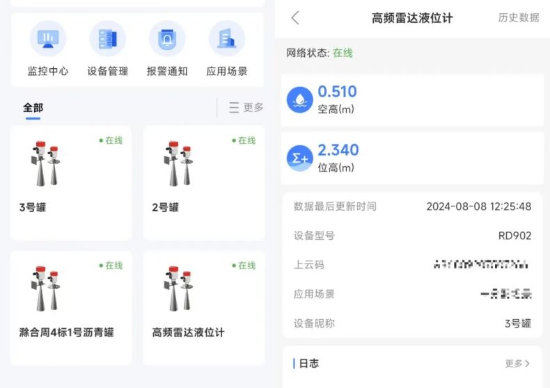 “借助美仪自主开发的数字化平台——仪表云,储罐内料位的实时监测数据经过加密后上传至云端,客户能够通过仪表堂堂APP或PC web随时随地进行远程监控,实现更加智能化的施工管理和运营。”高工说。