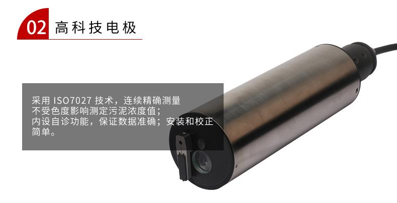 传感器基于组合红外吸收散射光线法,应用ISO7027方法可以连续测定污泥浓度。按照ISO7027红外双散射光线技术不受色度影响测定污泥浓度值。根据使用环境可以选配带自清洗功能。数据稳定,性能可靠;内设自诊功能,保证数据准确;安装和校正简单。