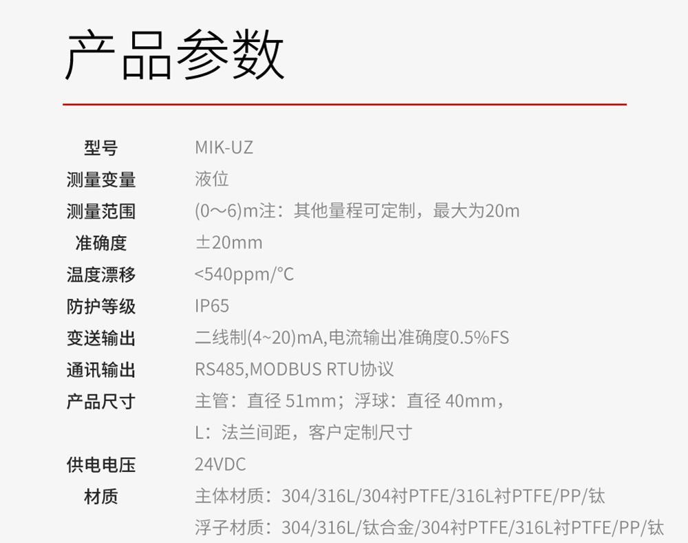 (0~6)m注:其他量程可定制,最大为20m