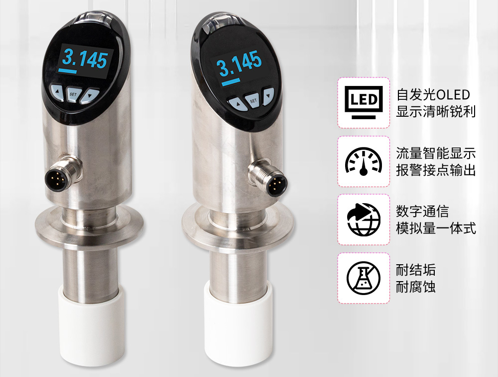 转轮流量计结构简单、稳定性高、安装维修使用方便等特点,可对管道中的液体流动及温度情况进行实时监控,提供流量及温度的信号输出,流量及温度报警开关输出,并采用 OLED 显示屏实时显示流体流速及温度,实现管道当中温度流量一体式的监控。被广泛应用于半导体、光伏、石油化工、电力、治金、钢厂、造纸、食口品加工、水处理、电池厂等行业。