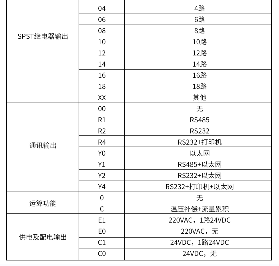 通讯输出:RS485/RS232通讯接口,波特率1200-57600BPS可设置,采用标准MODBUSRUT通讯协议,RS-485通讯距离可达1公里,